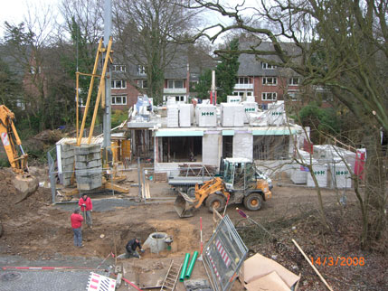 Von weitem erkennt ihr große Pakete mit neuen Bausteinen, das nächste Geschoss ist am Wachsen. In der 1. Etage liegen später eure Kinderzimmer.