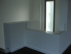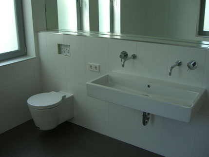 Das Bild oben zeigt die obere Etage, den Eingang zum Treppenbereich. Links ist das fast fertige Kinderbad zu sehen.