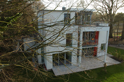 26.10.2008 Frank ist ganz hoch in einen Baum geklettert und fotografiert aus allen Perspektiven das Haus.